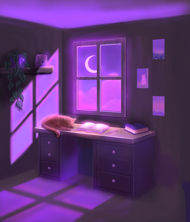 A desk with a magical view